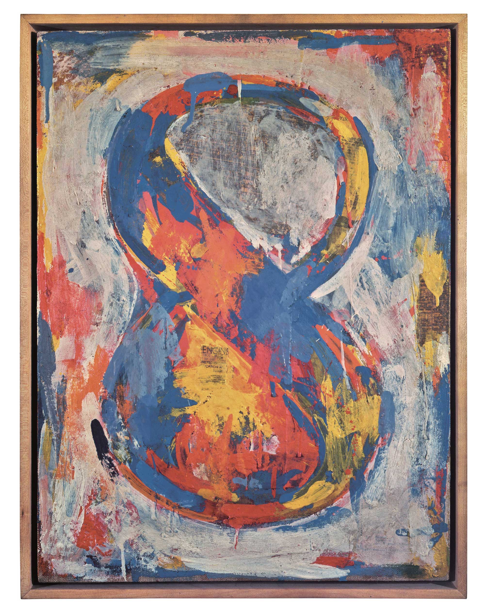 Dopo aver prestato servizio nella Guerra di Corea (1952-53), Johns tornò a New York, dove conobbe artisti come Marcel Duchamp e Robert Rauschenberg, oltre al musicista John Cage e al coreografo Merce Cunningham. Il percorso artistico di Johns è sempre stato incentrato sulla creazione di nuove immagini basate, come lui stesso affermava, su «cose che la mente già conosce». Johns ricorre spesso a oggetti familiari e preesistenti – bandiere, bersagli, mappe o numeri – che possono essere riprodotti su superfici piane senza ricorrere all’uso della prospettiva o di altri processi di illusione ottica. La bidimensionalità degli elementi rappresentati si contrappone alla forte matericità dell’encausto (tecnica impiegata fin dall’antichità romana nelle pitture murali), in cui il pigmento viene mescolato alla cera calda, fino a ottenere superfici estremamente resistenti.
