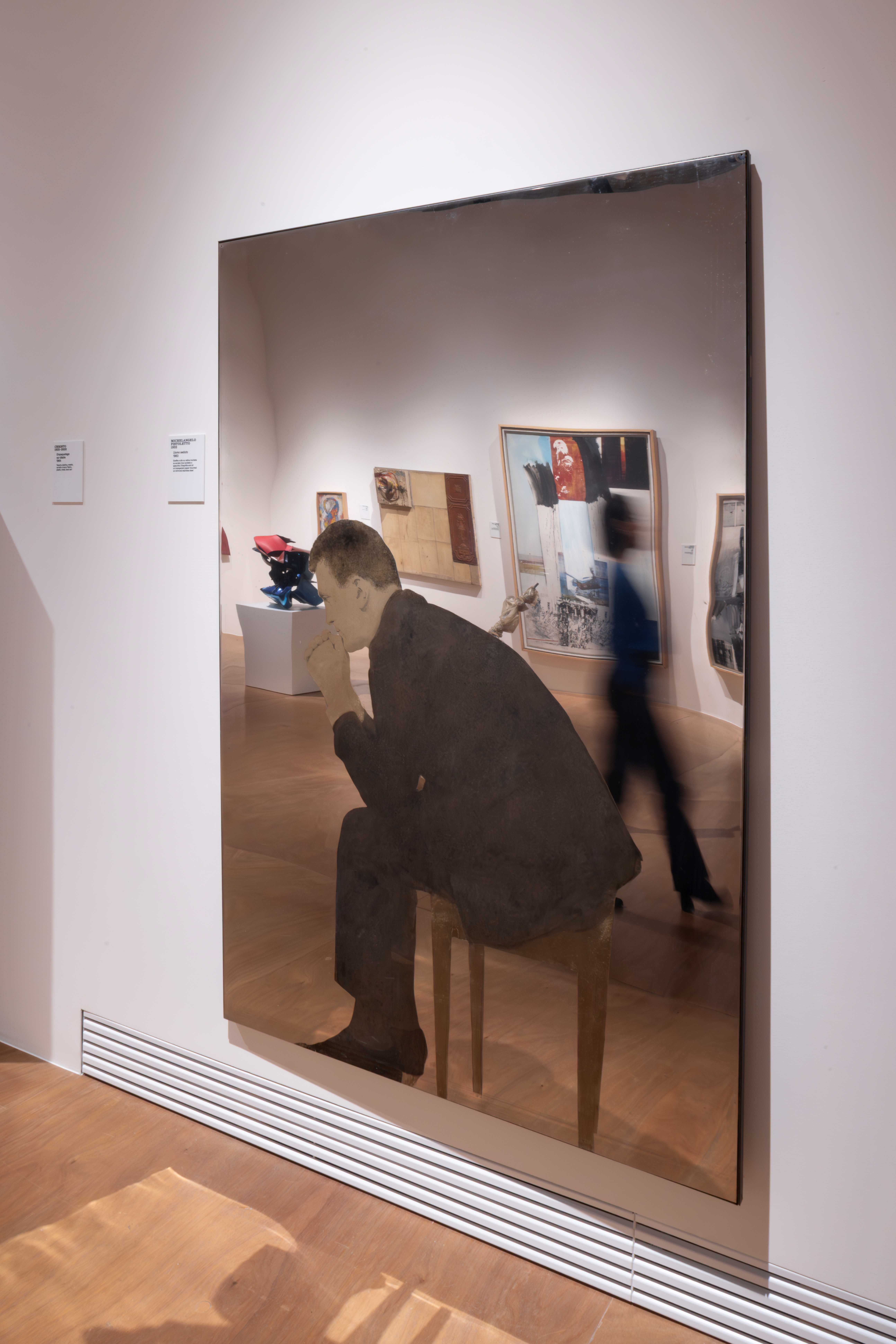 La prima sala si apre sulle origini della collezione Sonnabend, ponendo l’accento sul momento di transizione dall’Espressionismo Astratto al nuovo interesse per la rappresentazione della realtà emerso alla fine degli anni Cinquanta. Le opere di Jasper Johns, Robert Rauschenberg, Cy Twombly e James Rosenquist rappresentano il versante americano di questa ricerca, testimoniando la nascita di un linguaggio che rinnova la pittura attraverso l’uso di immagini e oggetti quotidiani. Nella stessa direzione si muovono le opere di Jim Dine e John Chamberlain, che traducono la gestualità pittorica in termini materici e tridimensionali. Il dialogo con l’Europa è rappresentato dai lavori di Mario Schifano e Michelangelo Pistoletto, protagonisti di una nuova sensibilità realista italiana, e da Arman e Christo, legati al gruppo del Nouveau Réalisme.