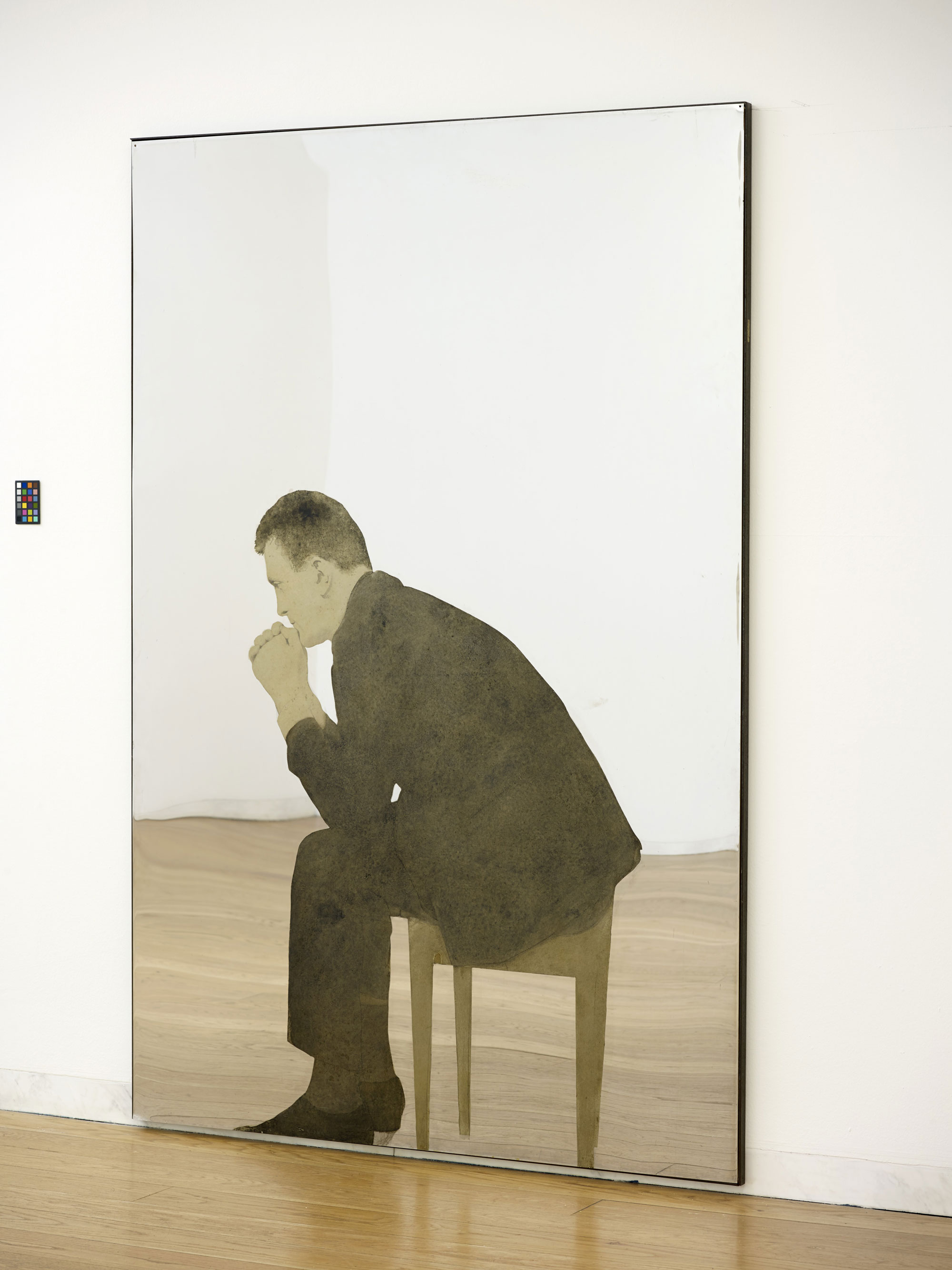 Michelangelo Pistoletto individua nel riconoscimento della propria immagine riflessa nello specchio la prima esperienza figurativa dell’essere umano. Questo concetto ha guidato la sua esplorazione dell’autoritratto, tema centrale nella sua opera dalla fine degli anni Cinquanta alla metà degli anni Sessanta. Nei primi autoritratti su tela, Pistoletto cercava di rappresentare contemporaneamente l’immagine suggerita dallo specchio e quella che immaginava lui stesso. A queste opere seguirono, nel 1960, autoritratti a grandezza naturale su sfondi monocromi in oro, argento e rame. Nel 1961 iniziò la serie di lavori intitolata Il presente in cui l’artista, dopo aver reso nera la tela applicando uno spesso strato di vernice scura, vi dipingeva direttamente il proprio riflesso, così da fondere tela e specchio.